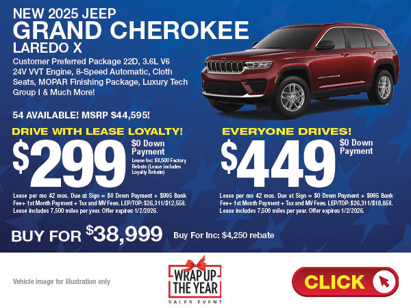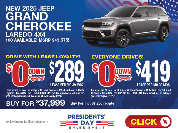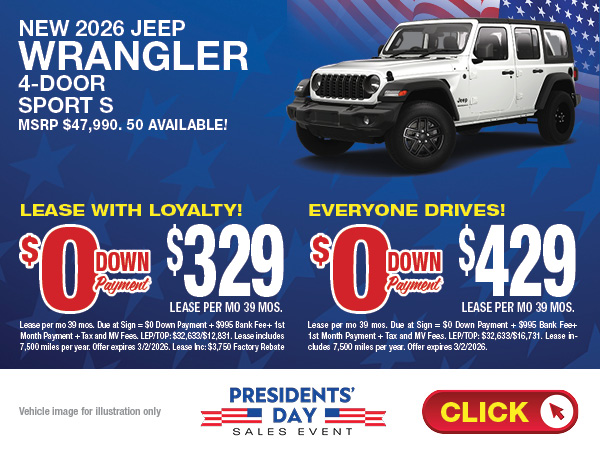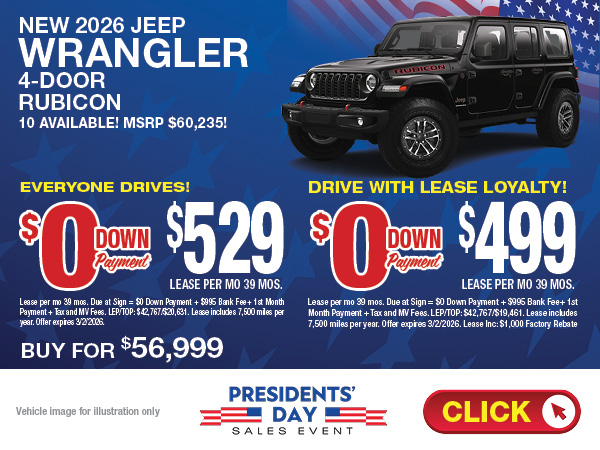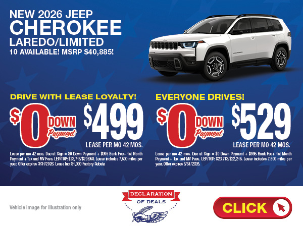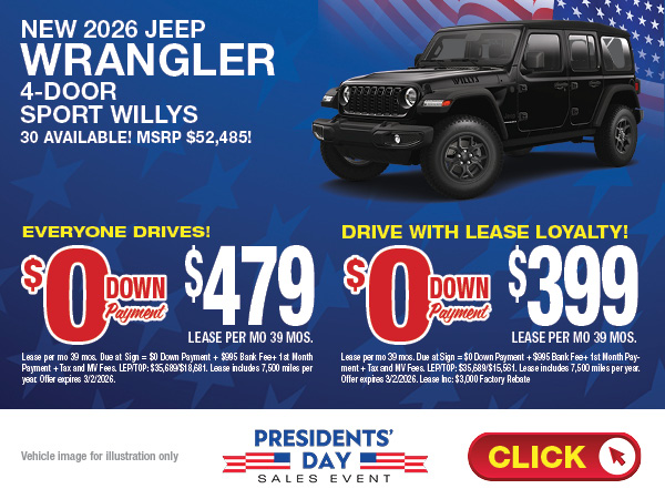 Jeep enthusiasts from Roslyn, East Hills, Hicksville and all over Long Island appreciate a great lease deal and you can always find them on the pages of WestburyDeals.com. Lease a new Jeep Cherokee or Wrangler with low monthly payments. Find a Jeep lease that is just right for you.