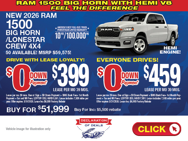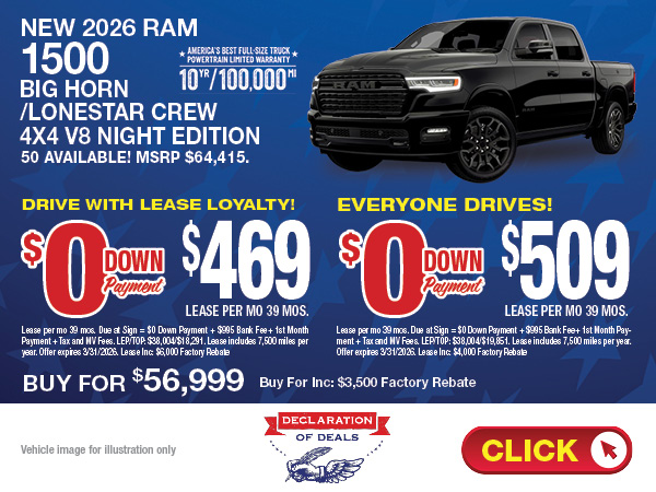 If you are looking to buy a new Ram truck, we also have great opportunities in our New Heavy Duty Truck Specials. Check this page often for deals on new Ram 1500 and Promaster series. The Ram deals are available to everyone on Long Island and New York. Convenient to East Meadow, Seaford and Jericho NY.